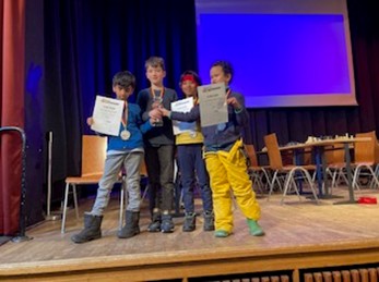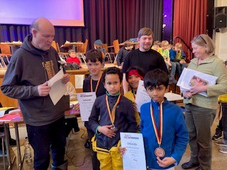 Aber die Karl-Lerbs-Straße hatte ja noch zwei weitere Mannschaften ins Rennen geschickt. So konnte die 2. Mannschaft immerhin 16 von 28 Spielen gewinnen, und belegte einen hervorragenden 14. Platz von immerhin 30 Mannschaften. Alle vier Spieler erreichten dabei zwischen drei und fünf Punkten, was auf eine sehr ausgeglichene Spielstärke schließen lässt. Gratulation an die vier Spieler, für die es auch darum ging, dass sie Spiel- und Turniererfahrung sammeln konnten.